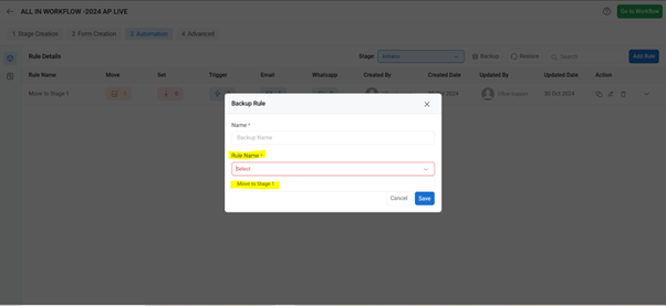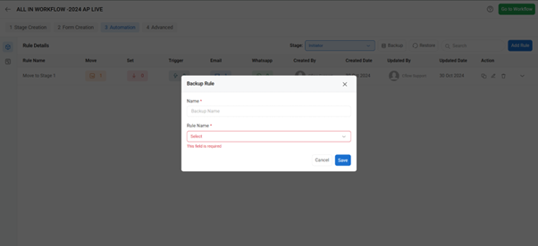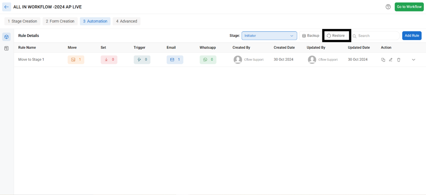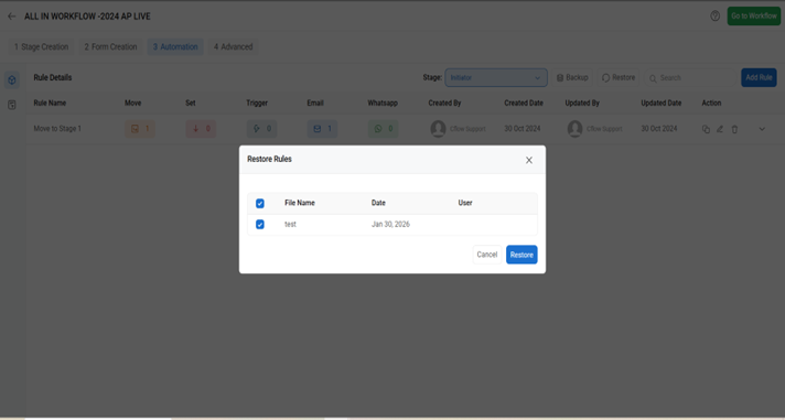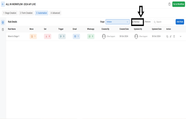 Additionally, you can restore the rule that has been backed up.
