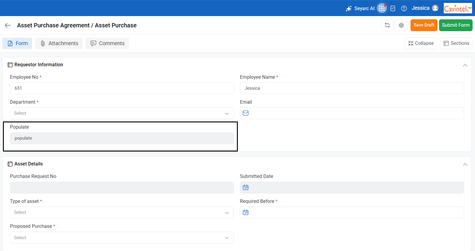- Create a new field in the form (Eg,.Populate) and provide a default value for it(Eg:populate).