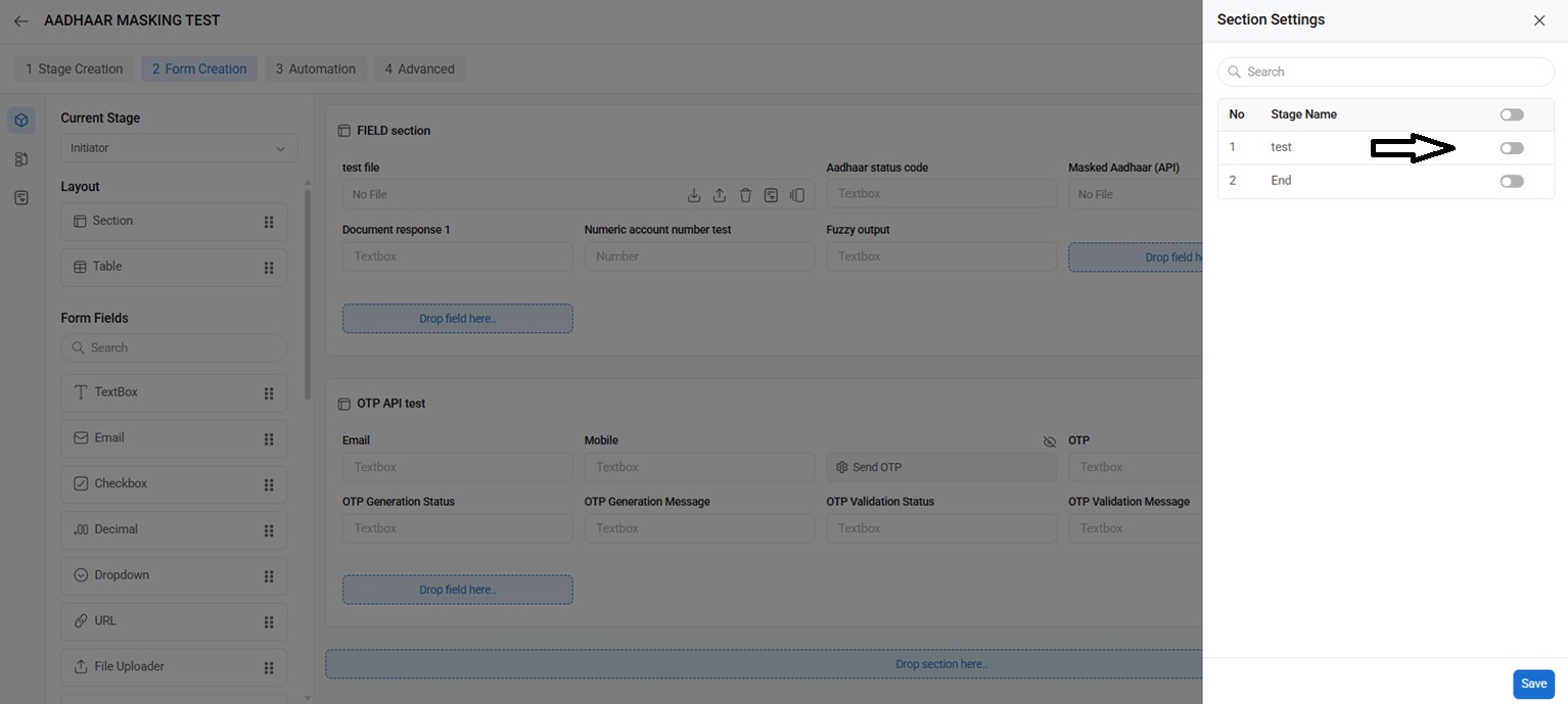 Step 3: When you click on the highlighted icon, the stages appears you can just toggle for the stages you would like to apply the changes and save.
